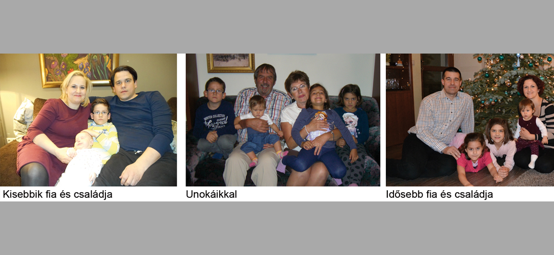 Biztosan emlékszel, vittem hozzád bemutatni őket. Gabi gyógyszerész lett, felesége Judit is ezt a szakmát választotta. 3 gyermekük született, Panna 7, Lilla 5, Réka pedig 1 éves. Tivadar közgazdász, felesége Judit szintén. Tivadar tavaly építőmérnöki diplomát is szerzett. Tőlük unokáink Tivadar, aki 7 éves és most januárban megszületett kistestvére, Boróka.